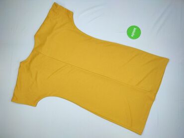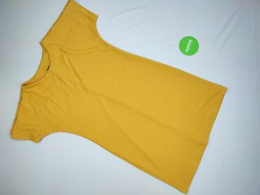 Sukienka damska w kolorze musztardowym - Fason: luźny, lekko rozszerzany ku dołowi - Dekolt: hiszpański/na ramiona, z szerokimi, marszczonymi panelami przy ramionach - Rękawy: krótkie, bufiaste - ...