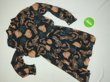 Sukienka damska midi z długim rękawem, wzór paisley - Tkanina lekka, zwiewna, miękko się układa - Kolor bazowy: czarny; wielobarwny, dekoracyjny print paisley (mięta, ecru, beż, koral, musztarda) ...Stan: