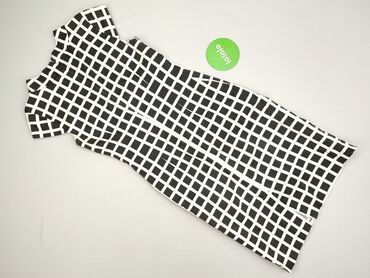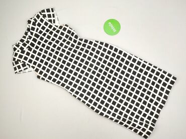Sukienka damska MOON Collection, rozmiar M - Fason: dopasowana, bez rękawów, długość za kolano (sheath/shift) - Kolorystyka: czarno‑biała z geometrycznym wzorem w kratkę; asymetryczne wstawki i pa...