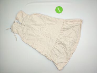Sukienka damska bez rękawów w kolorze jasnego beżu/ecru. - Fason: lekko rozkloszowany, długość przed kolano, głęboki dekolt V z przodu. - Talia: szeroka, elastyczna gumka podkreślająca sylwetkę (m...Stan: