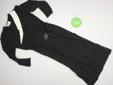 Czarna sukienka dzianinowa z paskiem - Krój: taliowana, długość do kolan - Dekolt: szeroki, opadający golf/łódka - Rękawy: 3/4 - Pasek: w komplecie, do wiązania w talii - Materiał: miękka, elastyc...