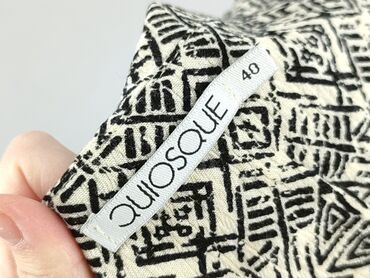 Sukienka QUIOSQUE, rozmiar 36 - Fason: dzianinowa, dopasowana, z krótkim rękawem - Dekolt: półokrągły, wykończony prążkowaną lamówką w czerni - Wzór: etniczno-geometryczny w poziome pasy; kolory c...