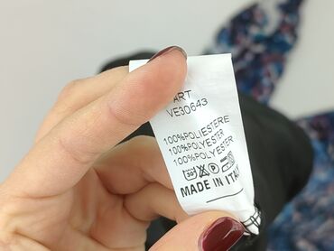 - Materiał: 100% poliester (lekka, zwiewna tkanina; metka z praniem 30°C, można prasować na niskiej temp., czyszczenie chemiczne P)