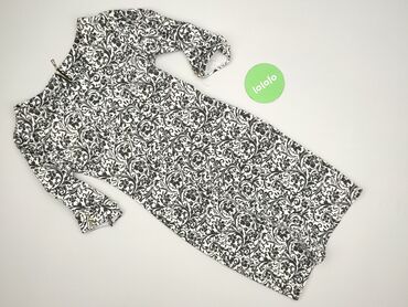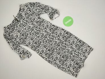 Sukienka damska z elastycznej dzianiny, w czarno-biały, geometryczny/etniczny print. - Krój: dopasowany, podkreślający sylwetkę - Długość: do kolan (midi) - Rękawy: 3/4 - Dekolt: łódka - Tkanina: ...