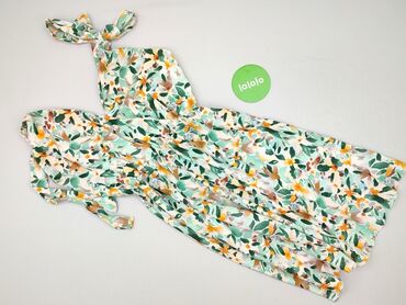 Sukienka midi w kwiaty – rozmiar M - Fason: kopertowy dekolt V, krótkie rękawy, gumka w pasie + pasek do zawiązania (model podkreśla talię), długość za kolano/midi, dół z delikatnym marszczeniem. ...