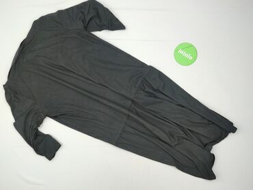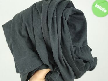 Sukienka damska, czarna, z dzianiny o gładkiej strukturze. - Krój: prosta, lekko oversize w górnej części, z charakterystycznym marszczeniem/zwinięciem materiału przy dole. - Długość: midi do łydki...