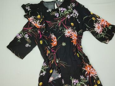 Sukienka H&M – rozmiar S - Fason: midi, z długim rękawem - Dekolt: okrągły - Materiał: 100% wiskoza (metka widoczna na zdjęciu) - Kolor/pattern: czarne tło w gęsty, kwiatowy nadruk w odcieniach zi...