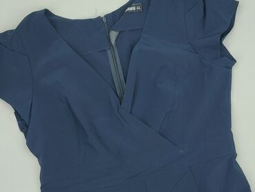 Sukienka damska WOMEN, rozmiar 40. - Fason: ołówkowy, długość za kolano, krótkie rękawy - Dekolt: łagodny, zaokrąglony - Kolor: granatowy - Wzór: kwiatowy (stonowane, wtopione w tkaninę motywy) - ...