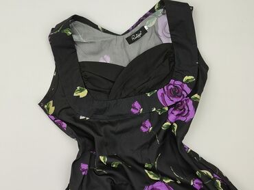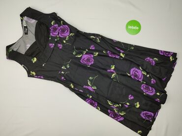 Sukienka damska Ruiyige, rozmiar L. - Kolor: czarny z dużym, wyrazistym wzorem czerwono-fioletowych róż i zielonych liści - Fason: bez rękawów, dopasowana góra z zakładkami na biuście, rozszerzana...