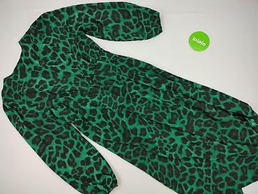 Sukienka damska z kopertowym dekoltem i długim rękawem. Zwiewna, lekka tkanina o satynowym chwycie. Wzór miks: motywy zwierzęce (panterka, zebra, „żyrafa”) połączone z kwiatami hibiskusa w odcienia...Stan: