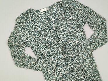Sukienka damska, zielona, z długim rękawem. - Fason: prosta, lekko trapezowa, z dekoracyjną zakładką/zaszewką z przodu, długość mini/za kolano (w zależności od wzrostu). - Dekolt: okrągły. - Zap...