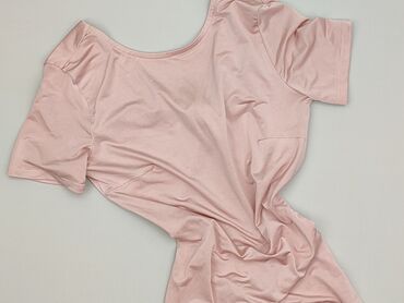 Sukienka damska w kolorze pudrowego różu - Krój: swobodny, z elastyczną gumką w pasie podkreślającą talię - Długość: midi z delikatnie dłuższym tyłem (asymetryczny dół) - Rękawy: krótkie - Dekolt:...