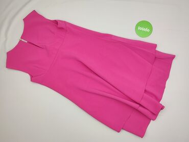 Sukienka damska w kolorze intensywnego różu (fuksja), rozmiar XL. - Krój: rozkloszowany, długość mini. - Dekolt: kwadratowy, szerokie ramiączka z ozdobnymi falbanami. - Talia: podkreślona paskiem/...
