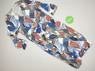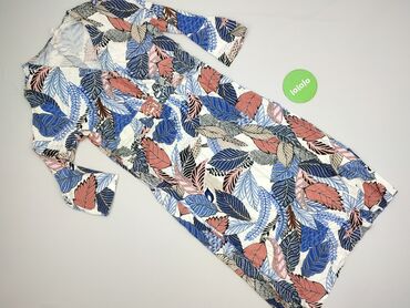 Sukienka damska JS Carrying Ladies Collection, rozmiar M. - Fason: kopertowy/przeszycie w talii z marszczeniem, długa rękaw - Długość: do kolan (około), lekko zwężana ku dołowi - Wzór: roślinny – ...