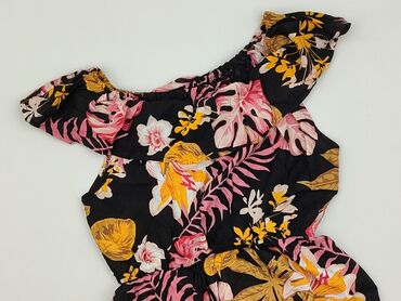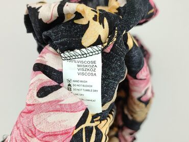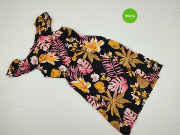 Sukienka damska J&X, rozmiar M/L - Krój: lekko rozkloszowana, w pasie delikatnie marszczona/gumka, krótkie rękawy, dekolt w serek. - Długość: midi. - Wzór: intensywny, kwiatowy print na czarnym tl...Stan: