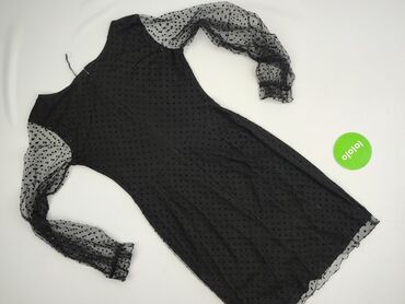 Sukienka damska, rozmiar L, kolor czarny. Model midi z efektownymi rękawami z tiulu w drobne, połyskujące kropeczki. Rękawy bufiaste, zakończone szerokim mankietem z elastyczną wstawką. Dekolt w ks...Stan: