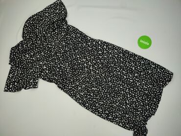 Sukienka damska midi w czarne tło z białym, nieregularnym, kropkowanym wzorem (akcenty w srebrzystym odcieniu).