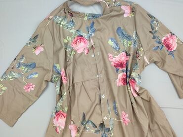 Sukienka damska midi 3XL – beżowa w kwiaty
