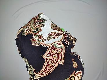- Wzór: orientalny/ paisley w odcieniach czerni, bieli, zieleni i rudo‑brązowych akcentów