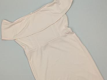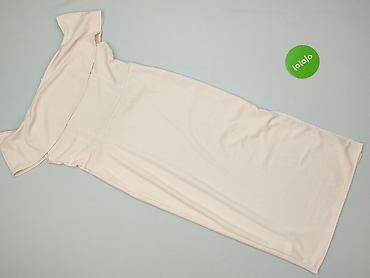 Sukienka damska z odkrytymi ramionami, w kwiatowy wzór - Rozmiar: L (metka) - Skład materiału: 95% poliester, 5% elastan - Kolor bazowy: pudrowy róż - Wzór: duże, malowane kwiaty w odcieniach różu...