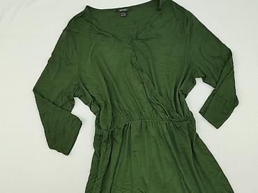 - Fason: z kopertowym dekoltem w kształcie V, odcięciem w talii i lekko rozszerzanym dołem; rękawy 3/4