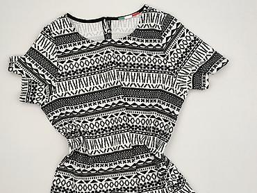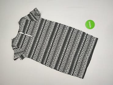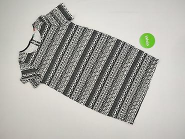 Sukienka damska, rozmiar 38 - Fason: dopasowany, z marszczeniem/ściąganiem w talii podkreślającym sylwetkę - Rękaw: krótki, nietoperzowy - Dekolt: okrągły - Długość: za kolano (midi) - Wzór: czarno...