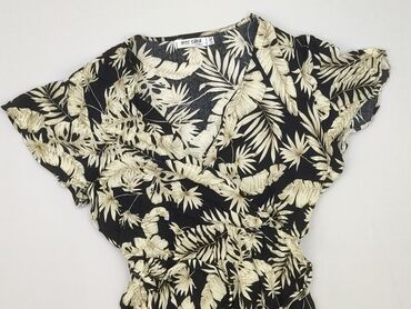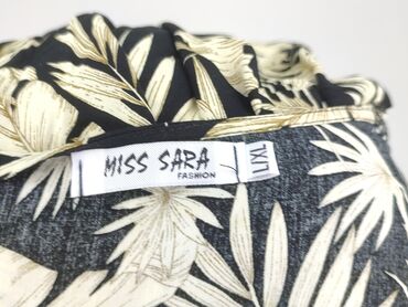 Sukienka damska TOM&ROSE (T&R) – rozmiar L - Fason: kopertowy/z wiązaniem w pasie (długi pasek do przewiązania), dekolt w serek, krótkie rękawy - Długość: midi - Wzór: roślinny – czarne liście na ...