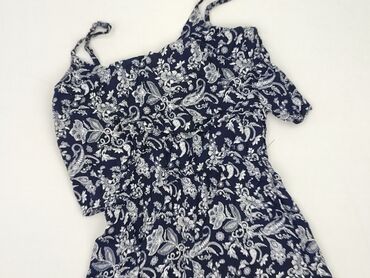 Sukienka damska na ramiączkach, rozmiar S (EU S / US S 165/72A). - Kolor: granatowy z białym, geometryczno-etycznym wzorem (rombiki i kropki). - Fason: lekka, zwiewna, z dekoltem V z przodu i z t...