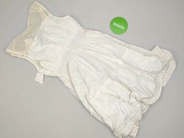 Sukienka damska LENALARGO – biała, ażurowa - Fason: rozkloszowana, długość midi - Dekolt: głęboki V z koronkową lamówką - Rękawy: krótkie, falbaniaste - Materiał: lekki, haftowany batyst z ażurowy...Stan:
