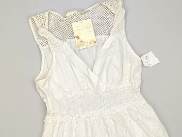 Biała sukienka ażurowa na ramiączkach - Krój: prosta góra, dół zakończony szeroką, falbanową baskinką/volanem po całym obwodzie. - Materiał: bawełniana tkanina z haftem angielskim (ażurowy, kwiato...