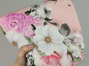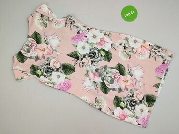 Sukienka damska w kwiatowy wzór - Krój: prosta, lekko dopasowana, długość do kolan - Rękaw: 3/4 - Dekolt: okrągły - Wzór/kolor: duże kwiaty w odcieniach pudrowego różu, bieli i czerni na szarym tl...