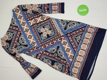 Sukienka damska Primark Cares, rozmiar L (EU 42/44, USA 10/12, IT 46/48). - Fason: mini, prosty krój. - Dekolt: w kształcie litery V. - Rękawy: długie, lekko bufiasto poszerzane. - Wzór: dr...