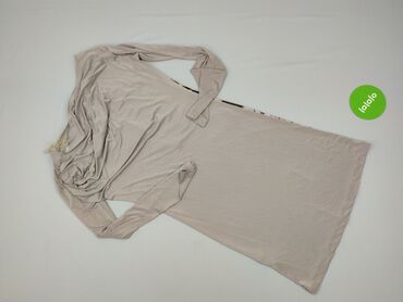 Sukienka damska, beżowa, z długim rękawem - Krój: odcinana w talii, rozkloszowany dół z marszczeniami - Dekolt: okrągły - Zapięcie: rząd ozdobnych złotych guzików z przodu (w tym jeden w kształcie...