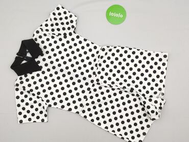 Kombinezon damski w kolorze czarnym, ozdobiony białymi groszkami. Posiada krótkie rękawy i elastyczną talię, która dopasowuje się do sylwetki. Dekolt w kształcie litery V z przodu i z tyłu dodaje l...