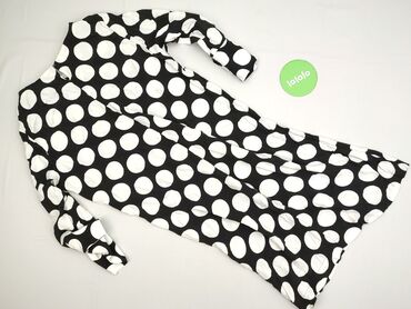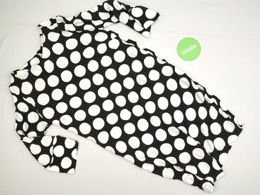 Sukienka damska w grochy - Fason: prosta, dzianinowa góra z krótkim rękawem, dół z lekkiego materiału w białe groszki na czarnym tle - Dekolt: okrągły - Długość: za kolano (midi) - Rękaw: krótki -...
