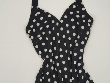 Sukienka damska na ramiączkach w grochy - Fason: zwiewna, lekko rozkloszowana spódnica, odcięcie i marszczenie w talii - Ramiączka: cienkie, regulowane - Dekolt: w kształcie serka - Wzór: białe gr...