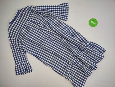 Sukienka koszulowa bez rękawów w niebiesko-białą kratkę. - Fason: prosta, przed kolano, bez rękawów - Zapięcie: listwa na guziki z przodu (metaliczne guziki) - Kołnierzyk: koszulowy - Kieszenie: t...