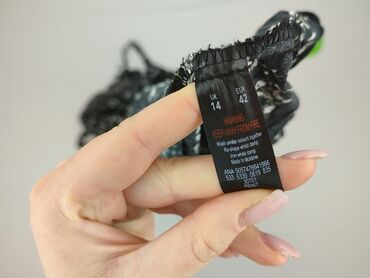Sukienka w kwiaty, rozmiar 42 - Krój: długość midi, odcinana w talii z wiązaniem z tyłu (paski do regulacji obwodu), krótki bufiasty rękaw z marszczeniem przy mankiecie, dekolt okrągły z krótką li...