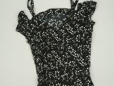 Sukienka damska w drobny kwiatowy wzór - Fason: rozkloszowana, lekko dopasowana w talii, zakładany dekolt w kształcie litery V z marszczeniem/wiązaniem na środku. - Rękaw: krótki. - Długość: midi ...