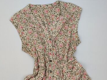 Sukienka damska w drobny roślinny wzór - Fason: prosta, lekko taliowana, długość do kolan (mini/tuż przed kolano w zależności od wzrostu) - Dekolt: kołnierzyk stójka z krótką listwą guzikową (3 gu...