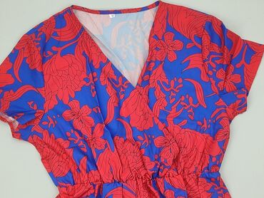 Sukienka w kwiaty – rozmiar M - Krój: kopertowy dekolt w serek, zaznaczona talia z elastyczną gumką, lekko rozkloszowany dół. - Rękawy: krótkie, swobodnie opadające. - Długość: do kolan (mini/midi...