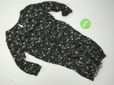 Sukienka maxi w kwiaty - Fason: kopertowy dekolt z wiązaniem z przodu, rękawy 3/4 z troczkami, odcięcie w talii z delikatnym marszczeniem, rozkloszowany dół do kostek. - Wzór i kolor: czarne tło, ...