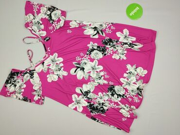 Bluzka/ponczo damskie oversize w intensywnym różowym kolorze. - Krój: luźny, z opuszczonym rękawem typu kimono - Dekolt: głęboki w kształcie litery V, ozdobiony dekoracyjną taśmą/koronką w kolorze...
