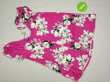 Sukienka damska w kwiaty - Krój: luźny, swobodny, z delikatnym marszczeniem w pasie i falującym dołem - Rękawy: krótkie, lekko bufiaste - Dekolt: zaokrąglony - Wzór: kwiatowy – różowe, żółte i zie...