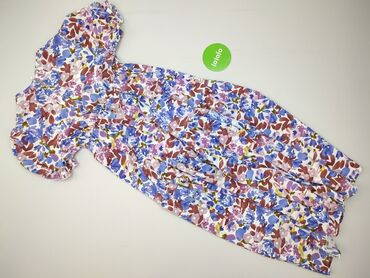 Sukienka damska z krótkim rękawem, ozdobiona wzorem w drobne kwiaty. Posiada dekolt w kształcie litery V oraz lekko marszczoną talię, która delikatnie podkreśla sylwetkę. Wielokolorowy wzór, dominu...Stan: