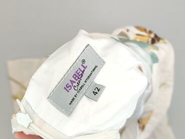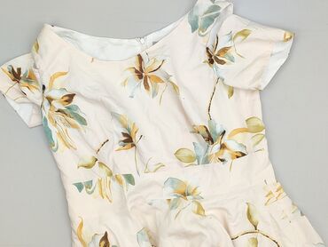 Sukienka damska B’lection, rozmiar 40. - Kolor: jasny, perłowy/beżowo‑kremowy. - Krój: taliowana góra z modelującymi przeszyciami, rozkloszowany dół. - Dekolt: w kształcie litery V. - Rękawy: krót...