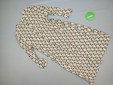 Sukienka damska o długości do kolan, w rozmiarze 38, z okrągłym dekoltem i krótkimi rękawami. Dominujący biały kolor uzupełniają wzory w odcieniach czerwieni, zieleni i niebieskiego. Zapięcie na za...