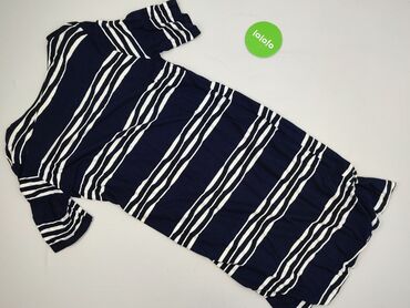 Sukienka H&M Divided w paski - Model: dopasowana, ołówkowa - Wzór: poziome granatowo‑białe pasy (styl marynistyczny) - Dekolt: okrągły - Rękaw: krótki - Długość: za kolano (midi) - Detal: wiązanie...