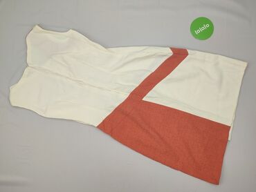 Sukienka damska bez rękawów, dwukolorowa - Krój: ołówkowy, długość do kolan - Dekolt: okrągły - Góra w kolorze białym, dolna część w kolorze pudrowego różu (color block) - Delikatnie modelujące zas...