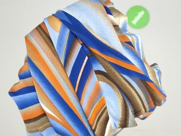 - Wzór: abstrakcyjne fale/paski w odcieniach niebieskiego, pomarańczowego, brązu, beżu i bieli